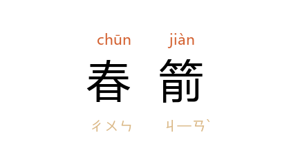 ⒈ 春天的漏箭。古代以铜壶滴漏计时,壶内置箭,刻节,浮于水上,以计昼夜昏明。