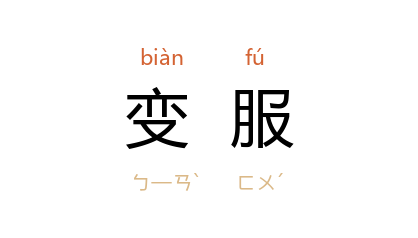 引《战国策·魏策二》:“王若欲报 齐 乎,则不如因变服折节而朝 齐,楚王 必怒矣。”鲍彪 注:“不为人君服。”宋 梅尧臣 《依韵和偶书相留》:“车中变服为 秦 客,头上南冠学 楚 囚。”明 姚士粦 《见只编》卷中:“余变服謁 丁 道旁,见 丁 与锦衣官同坐一车。”