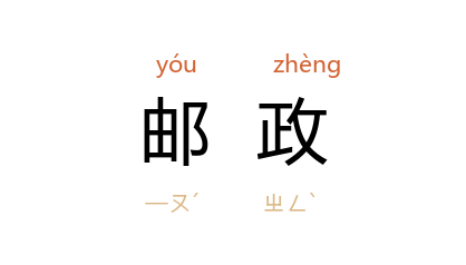 ⒈ 有关传递信函、包裹与办理储金汇兑、寿险业务等的邮政事务。为国家行政之一,现隶属于交通部。