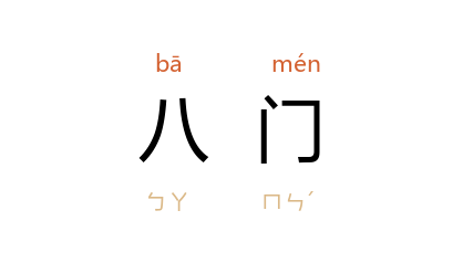 ⒉ 术数家语,谓休、生、伤、杜、死、景、惊、开为八门。休、生、开三门为吉,馀五门为凶。奇门遁甲等术皆用此说。