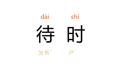 引《孟子·公孙丑上》:“虽有智慧,不如乘势;虽有鎡基,不如待时。”晋 孙楚 《为石仲容与孙皓书》:“驍勇百万,畜力待时,役不再举,今日之谓也。”明 刘基 《顺斋箴为夏仲珍作》:“天地顺动,百度弗渝,待时而行,处顺以守。”秦似 《比大和比小》:“所以这些枪,就静静躺在货架上,只好待时而沽。”