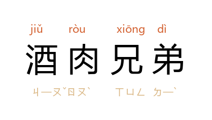 引《何典》第二回:“这是前村 催命鬼 的酒肉兄弟,叫做 破面鬼。”《快心编初集》第五回:“沉氏 道:‘嗄!自古説:酒肉兄弟千个有,急难之中一个无。’”