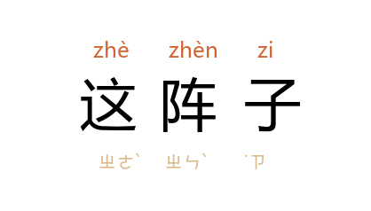 引曹禺 《北京人》第二幕:“她这阵子在屋里干什么?”骆宾基 《在山区收购站》三:“这阵子粮食生产抓得紧,哪顾得上山采集呀!”陈昌本 《“花脚王”开棺》二:“大叔,这阵子人们给牲口挂掌,到哪儿去?”
