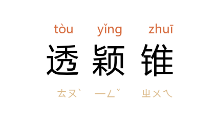 ⒈ 《史记·平原君虞卿列传》:“秦之围邯郸,赵使平原君求救,合从于楚,约与食客门下有勇力文武备具者二十人偕……门下有毛遂者,前,自赞于平原君曰:'遂闻君将合从于楚,约与食客门下二十人偕,不外索。今少一人,愿君即以遂备员而行矣。'平原君曰:'先生处胜之门下几年于此矣?'毛遂曰:'三年于此矣。'平原君曰:'夫贤士之处世也,譬若锥之处囊中,其末立见。今先生处胜之门下三年于此矣,左右未有所称诵,胜未有所闻,是先生无所有也。先生不能,先生留。'毛遂曰:'臣乃今日请处囊中耳。使遂蚤得处囊中,乃颖脱而出,非特其末见而已。'”后以“透颖锥”喻不甘困顿的非凡志向。