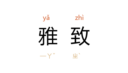 ⒈ 高雅、秀逸的意趣。大多指风景或颜色、装饰等。