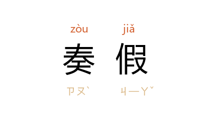 ⒈ 举奏升堂之乐。一说,假为“徦”之假借;徦,至也。“奏假”乃祭者致神之谓。见 马瑞辰 通释。