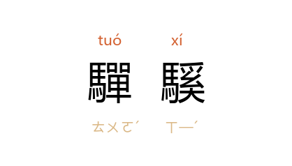 引《史记·匈奴列传》:“其奇畜则橐駞、驴、驘、駃騠、騊駼、驒騱。”裴駰 集解引 徐广 曰:“音颠。巨虚之属。”《汉书·匈奴传上》作“驒奚”。 《文选·司马相如<上林赋>》:“蛩蛩驒騱,駃騠驴驘。”郭璞 注:“驒騱,駏驉类也……驒,音颠。”清 吴雯 《<海天长啸图>为张辅公别驾题》诗:“况有神驹称迈种,七日超母惊驒奚。”