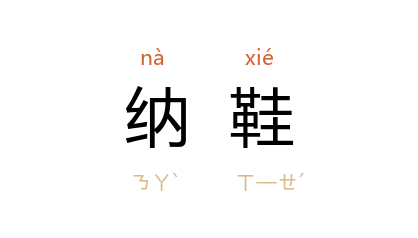 引《金瓶梅词话》第二三回:“蕙莲 道:‘我不得闲,与娘纳鞋哩。’”丁玲 《太阳照在桑干河上》一:“女人们就坐在远点的地方纳鞋底,或者就只抱着她们的孩子。”