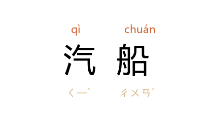 ⒉ 由蒸汽动力推进的小船;尤指作内河或沿海交通用者。