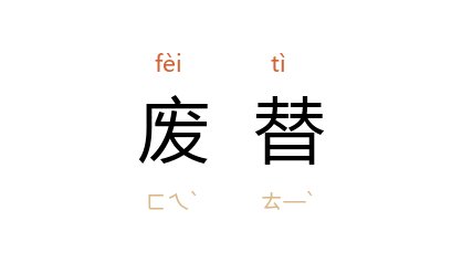 引《北史·羊深传》:“时胶序废替,名教陵迟。”唐 陆龟蒙 《战秋辞》:“不过约弱欹垂,戕残废替。”
