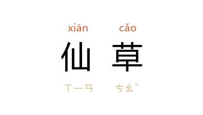 ⒉ 植物名。唇形科仙草属,一年生草本。长在田畦或河堤旁,形似苋菜。茎方形而带褐 色。叶有茸毛。茎叶熬汁后加入少量碳酸钠,再调合甘?粉,冷却后凝结为黑色冻状 物,加糖水,为夏季清凉食品。