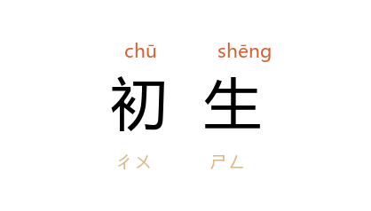 引《书·召诰》:“若生子,罔不在厥初生,自貽哲命。”《诗·王风·大车》“毳衣如菼” 毛 传:“菼,鵻也,芦之初生者也。”明 徐光启 《农政全书》卷三一:“初生色黑,渐渐加食,三日后,渐变白。”