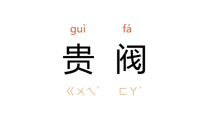 引晋 皇甫谧 《高士传·乐臣公》:“臣公 贵阀,或拥旄旌;独穷玄牝,不滑神精。”《新唐书·韦嗣立传》:“永淳 后,庠序隳散,胄子衰缺,儒学之官轻,章句之选弛。贵阀后生以徼倖升,寒族平流以替业去。”