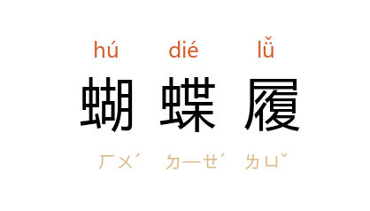 引清 沉复 《浮生六记·浪游记快》:“有著短袜而撮绣花蝴蝶履者,有赤足而套银脚鐲者。”清 沉起凤 《谐铎·苏三》:“甫登堂,见一姬,两鬟堆茉莉如雪,著蝉翼衫,左右袒露,红墻一抹;下曳冰綃袴,白足拖八寸许蝴蝶履。”