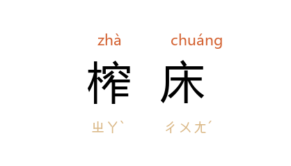 宋 王灼 《糖霜谱》第四:“糖霜户器用……曰榨牀,以安盘,牀上架巨木,下转轴引索压之。”
