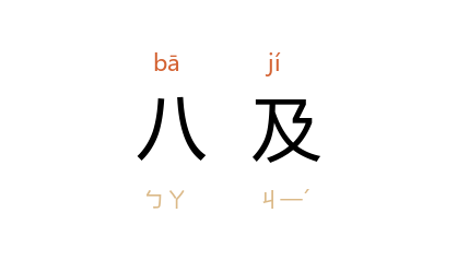 ⒈ 东汉 士大夫互相标榜,称有贤德、有影响的八人为“八及”。及,谓能引导他人追随众所宗仰之贤人。说有二:(1)指 张俭、岑晊、刘表、陈翔、孔昱、苑康、檀敷、翟超 八人。 晋 陶潜 《圣贤群辅录》及 宋 王应麟 《小学绀珠》有 范滂,无 翟超。(2)指 朱楷、田槃、疎耽、薛敦、宋布、唐龙、嬴咨、宣褒 八人。并见《后汉书·党锢传序》。