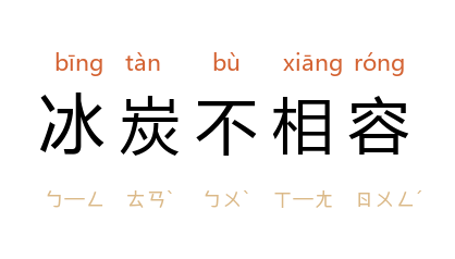 ⒈ 冰:冰块;炭:炭火。比喻两种对立的事物不能并存。
