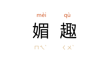 引《晋书·王献之传》:“献之 骨力远不及父,而颇有媚趣。”南朝 梁 锺嵘 《诗品》卷中:“其源出于 张华,才力苦弱,故务其清浅,殊得风流媚趣。”明 宋濂 《题欧阳率更帖》:“然而 信本 虽极力追倣 右军,而其规矩媚趣或得 大令 为多。”