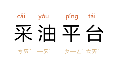 ⒈ 又称“生产平台”。从事海上油、气等生产性开采、处理、储藏、监控、测量等的平台。有的是单个平台,具有多种功能;也有由若干不同用途的平台连以引桥组成平台群,成为海上集合式石油生产基地。可分为固定式和浮动式两大类。