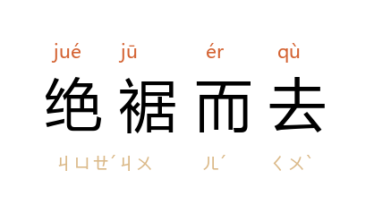 引南朝宋·刘义庆《世说新语·尤悔》:「温公初受刘司空使劝进,母崔氏固驻之,峤绝裾而去。」《聊斋志异·卷六·聂政》:「至于荆轲,力不足以谋无道秦,遂使绝裾而去,自取灭亡。」