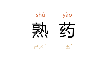 《文明小史·第一九回》:「原来这药房里只是上海贩来的各种瓶子里的熟药,却没有生药。」