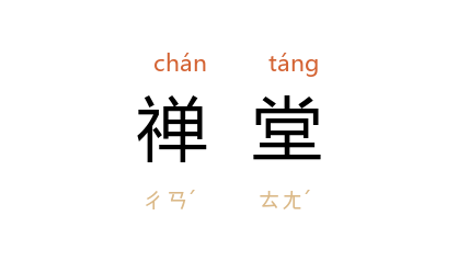 ⒈ 在中国禅宗的寺院建筑结构中,专供集体坐禅之场所。在禅堂参禅时,主持和尚会就根器成熟的禅修者,用棒、喝等方法,使其开悟,故禅堂也称为「选佛场」。