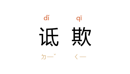 引《汉书·王尊传》:“劾奏 尊 ‘妄詆欺非谤赦前事,猥歷奏大臣,无正法,饰成小过,以涂污宰相’。”晋 袁宏 《后汉纪·光武帝纪六》:“至其后世,不能以德而勤於法,故有吹毛求疵,詆欺无限,桃李之馈集以成事。”元 吴莱 《敖箴》:“哀今之人,欲一以敖,詆欺穷陋,矜説华好,狂歟黠歟。”