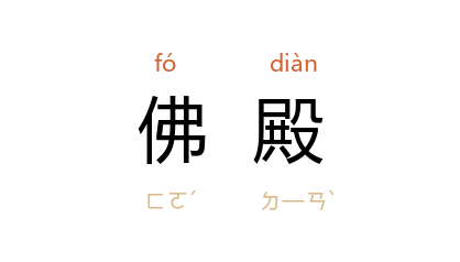 引唐 张读 《宣室志》卷二:“丰乐里 开业寺 有神人足跡甚长,自寺外门至佛殿。”元 王实甫 《西厢记》第一本第一折:“红娘,俺去佛殿上耍去来。”清 王士禛 《池北偶谈·范祠鸟》:“长白山 醴泉寺,即 范文正公 读书处,祠在佛殿东偏。”郑振铎 《西行书简·云岗》:“第一窟通称为大佛殿。”