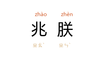 清 刘献廷 《广阳杂记》卷五:“眹音引,目眶也;兆,灼龟也。二者蓍见几微,皆先事而知之。 《韵》注云:‘吉凶形兆谓之兆眹。’今人误以眹为朕,又倒为朕兆,於古无据。”