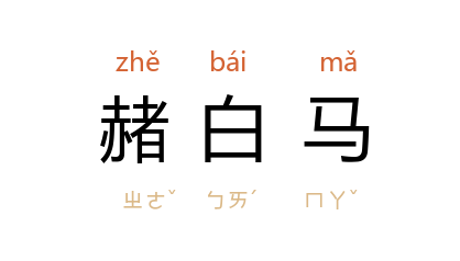 引《尔雅·释畜》“彤白杂毛,騢” 晋 郭璞 注:“即今之赭白马。”唐 韩翃 《赠王逖》诗:“新调赭白马,暂试黑貂裘。”明 田汝成 《西湖游览志馀·艺文赏鉴》:“马之背则微赤,自腹以下皆浅白色,盖赭白马也。”