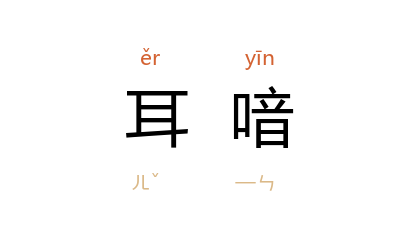 引元 李文蔚 《燕青博鱼》第二折:“[正末做打耳喑科云]哥也,可是这般?”元 无名氏 《隔江斗智》第三折:“你与主公穿衣服,悄悄送这锦囊,教主公袖了;再打个耳喑,教主公酒散只装醉,掉下锦囊。”