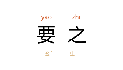 引《史记·张仪列传论》:“要之,此两人(指 苏秦、张仪 )真倾危之士哉!”宋 陆游 《老学庵笔记》卷七:“剑门关 皆石,无寸土; 潼关 皆土,无拳石。虽皆号称天下险固,要之 潼关 不若 剑门。”鲁迅 《且介亭杂文·脸谱臆测》:“‘重枣’是怎样的枣子,我不知道,要之,总是红色的罢。”