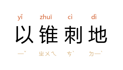 ⒈ 用锥子刺地来测量地的深浅。比喻见识浅陋,所知甚少。语本《庄子·秋水》:“是直用管窥天,用锥指地也,不亦小乎!”成玄英疏:“用锥指地,宁测地之浅深?”