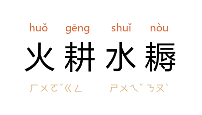 注音ㄏㄨㄛˇ ㄍㄥ ㄕㄨㄟˇ ㄋㄡˋ
