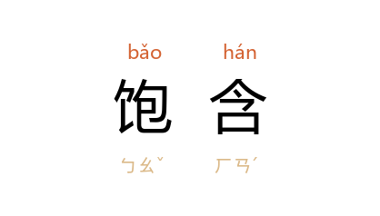 引殷夫 《三月八日》:“他是扭扭捏捏装扮不自然的女人的声调,饱含着那种妓女的媚态而唱了多时的戏。”刘白羽 《歌唱李仁杰》诗:“油浪饱含英雄血,歌唱英雄涌心潮。”
