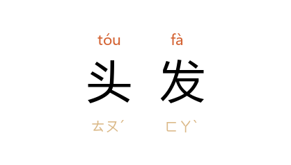 ⒈ 人的前额以上、两耳以上和后颈部以上生长的毛。