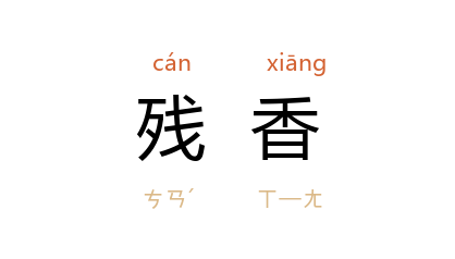 引唐 孟迟 《长信宫》诗:“君恩已尽欲何归,犹有残香在舞衣。”明 高启 《梅花》诗之一:“寒依疏影萧萧竹,春掩残香漠漠苔。”