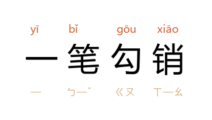 ⒈ 全数作废或取消。清·黄宗羲〈寿族兄镇恶七十〉诗三首之二:「娶妻生子从新起,一笔勾销七十年。」也作「一笔勾」。