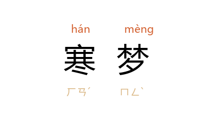 引唐 周贺 《赠朱庆馀校书》诗:“风泉尽结冰,寒梦彻西陵。”唐 杜牧 《夜雨》诗:“点滴侵寒梦,萧骚著淡愁。”瞿秋白 《饿乡纪程》十二:“寒梦惊醒,黯黯的烛影,寂寂的风声,车已停住,听着窗外轻轻的一阵一阵雪花簌簌的飞转。”