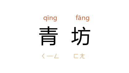 ⒈ 即青宫。皇太子所居之处。 明 高启 有《皇太子游东苑池上呈青坊诸公》诗。