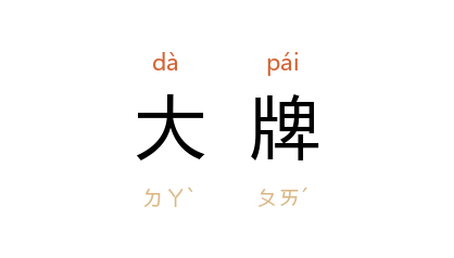 ⒊ 玩扑克牌时,与其他各副牌组相较,占有绝大优胜的牌,称为「大牌」。