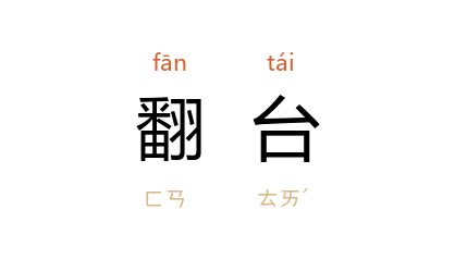 引《官场现形记·第一二回》:「文七爷晓得赵不了还要翻台,便催著上饭。」《文明小史·第二三回》:「华甫到了这金迷粉醉的世界,不觉神魂飘荡,听了那倌人的话,便要翻台。」