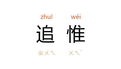 引《隶释·汉殽阬君神祠碑》:“追惟 伯禹 遏治之利,乃復浚治 殽 阬。”宋 陈鹄 《耆旧续闻》卷七:“追惟英华之言,欲取所遗香爇之。”元 刘祁 《归潜志》卷十三:“追维旧事,为之惻愴。”清 汪懋麟 《除夕前三日陈学士招饮寓斋》诗:“追维困官书,那得数相过。”谭延闿 《<孙中山与蒋介石书>跋》:“追维畴昔,侍坐款语,如在目前,不禁涕泗之横集矣。”