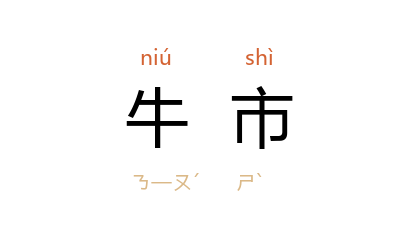 ⒈ 指价格持续上涨,成交额上升,交易活跃的证券市场行情(跟‘熊市’相对)。