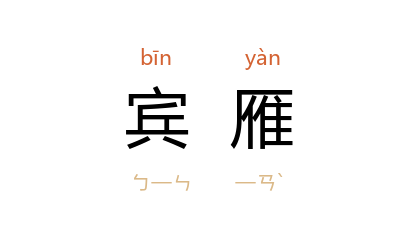 引语本《礼记·月令》:“﹝季秋之月﹞鸿雁来宾。”唐 钱起 《见上林春雁翔青云寄杨起居李员外》诗:“上林 春更好,宾雁不知归。”明 陈汝元 《金莲记·闻繫》:“心惊宾雁双翰,目断孤云一带。”郭沫若 《蝶恋花》词:“几见熏风摇碧草,南来宾雁知多少。”