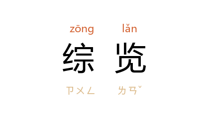 引《文选·潘岳<杨仲武诔>》:“子以妙年之秀,固能综览义旨,而轨式模范矣。”李周翰 注:“综,犹总也。”《晋书·儒林传·韦謏》:“雅好儒学,善著述,於羣言祕要之义,无不综览。”苏曼殊 《断鸿零雁记》第三章:“后此夫人综览季世,渐入浇漓,思携尔託根上国。”孙犁 《秀露集·耕堂读书记一》:“综览 陈寿 所记, 诸葛亮 的一生,功劳固然很大,失败和无能为力之处也不少。”