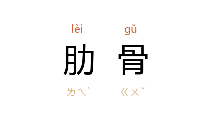 ⒈ 人或高等动物胸壁两侧的长条形骨头。