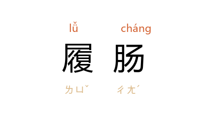 引《吕氏春秋·期贤》:“野人之用兵也……扶伤舆死,履肠涉血,无罪之民,其死者量於泽矣。”南朝 陈 徐陵 《陈公九锡诏》:“石头、姑熟,流髓履肠。”《隋书·李德林传》:“佐鬭嫁祸,纷若蝟毛,曝骨履肠,间不容礪。”