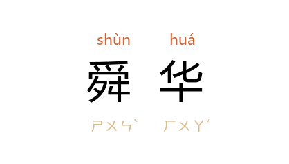 引《诗·郑风·有女同车》:“有女同车,颜如舜华。”毛 传:“舜,木槿也。”周咏 《无题》诗之二:“两美容颜比舜华, 沉香亭 北倚栏斜。”