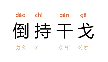 ⒈ 干、戈,武器名。倒持干戈指手持武器尖刃,将柄向人。比喻授人以权柄,则己身先受害。